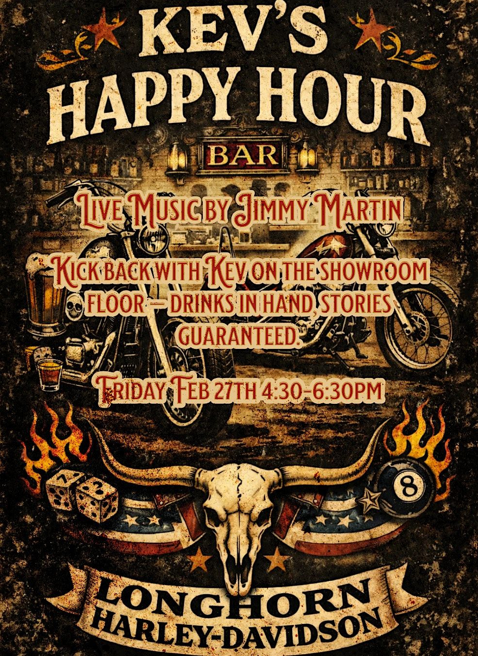 Join us for Kev’s Happy Hour at Longhorn Harley-Davidson on Friday, March 27th from 4:30–6:30 PM!