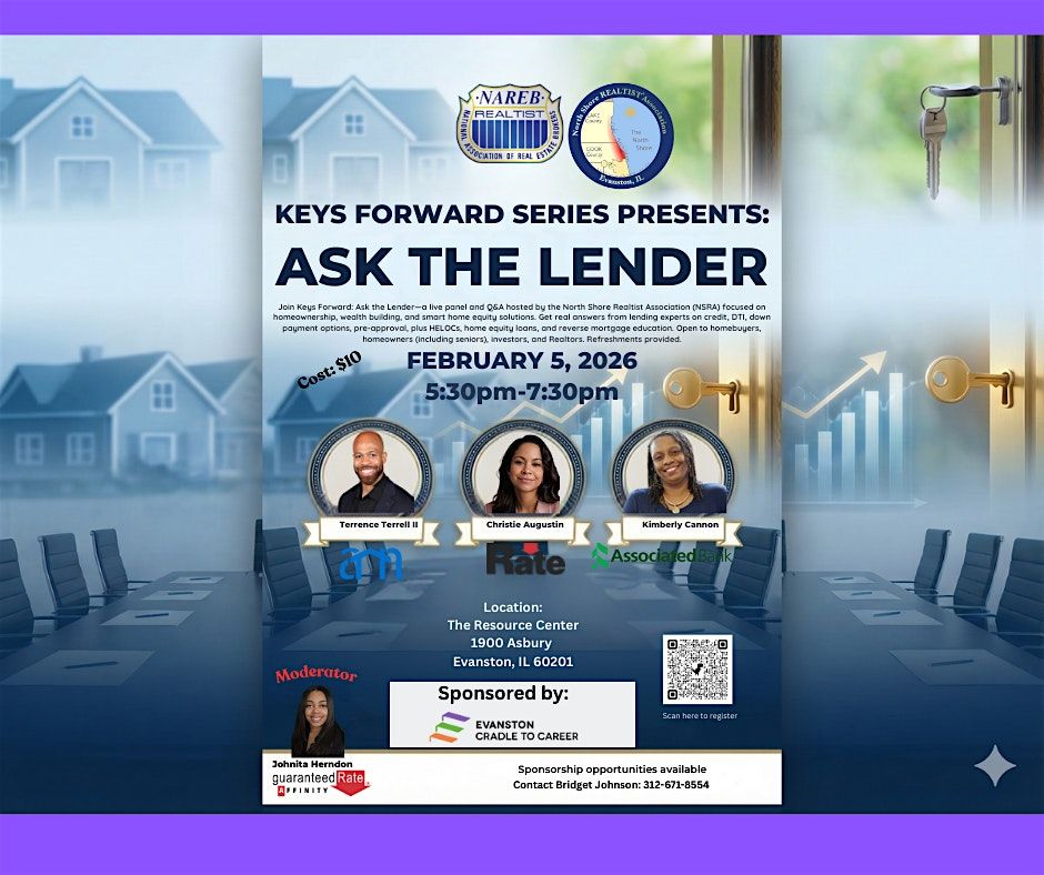 Join Keys Forward: Ask the Lender—a live panel and Q&A hosted by the North Shore Realtist Association (NSRA) focused on homeownership, wealth building, and smart home equity solutions. Get real answers from lending experts on credit, DTI, down payment options, pre-approval, plus HELOCs, home equity loans, and reverse mortgage education. Open to homebuyers, homeowners (including seniors), investors, and Realtors. Refreshments provided.