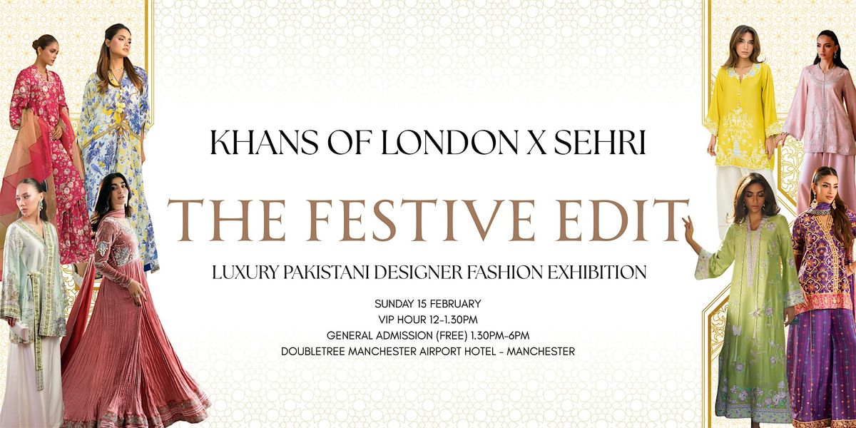Khans of London X Sehri present The Festive Edit! An exclusive Pakistani designer fashion exhibition at Doubletree by Hilton Manchester Airport.