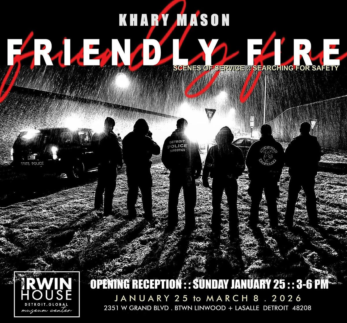 JOIN US for the opening of FRIENDLY FIRE: A photo essay by multidisciplinary artist, activist, and former Detroit Police Homicide Detective, Khary Mason.
