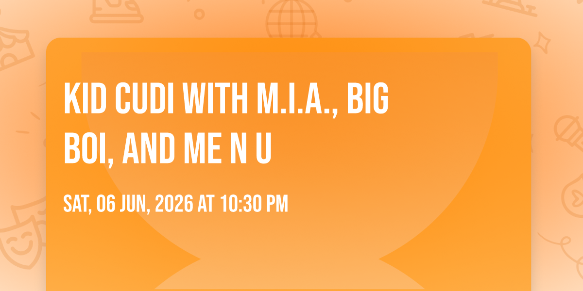 📍 Location: 44.7951, -68.7739🎉 Prepare to be amazed at Kid Cudi with M.I.A., Big Boi, and me n u, the most anticipated gathering of the season! 🌟 Set against the stunning backdrop of Maine Savings Amphitheater in vibrant Bangor, ME, this event promises to redefine your expectations. 📅 Mark your calendars for June 6th, 2026 at 10:30 PM and get ready to immerse yourself in an atmosphere of wonder and excitement. ✨ From the moment you arrive, you'll be transported into a world where memories are made and stories come alive. They have crafted an experience that perfectly harmonizes entertainment, innovation, and community spirit. 🌈 Join us as we create moments that will be discussed for years!