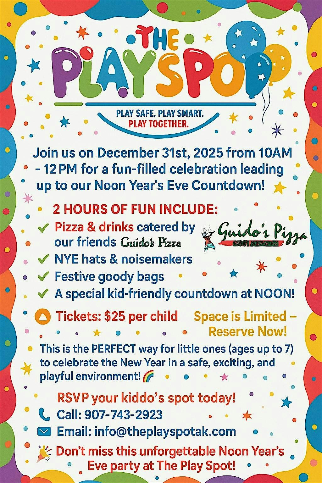 Email: [email protected]’t miss this unforgettable Noon Year’s Eve party at The Play Spot!