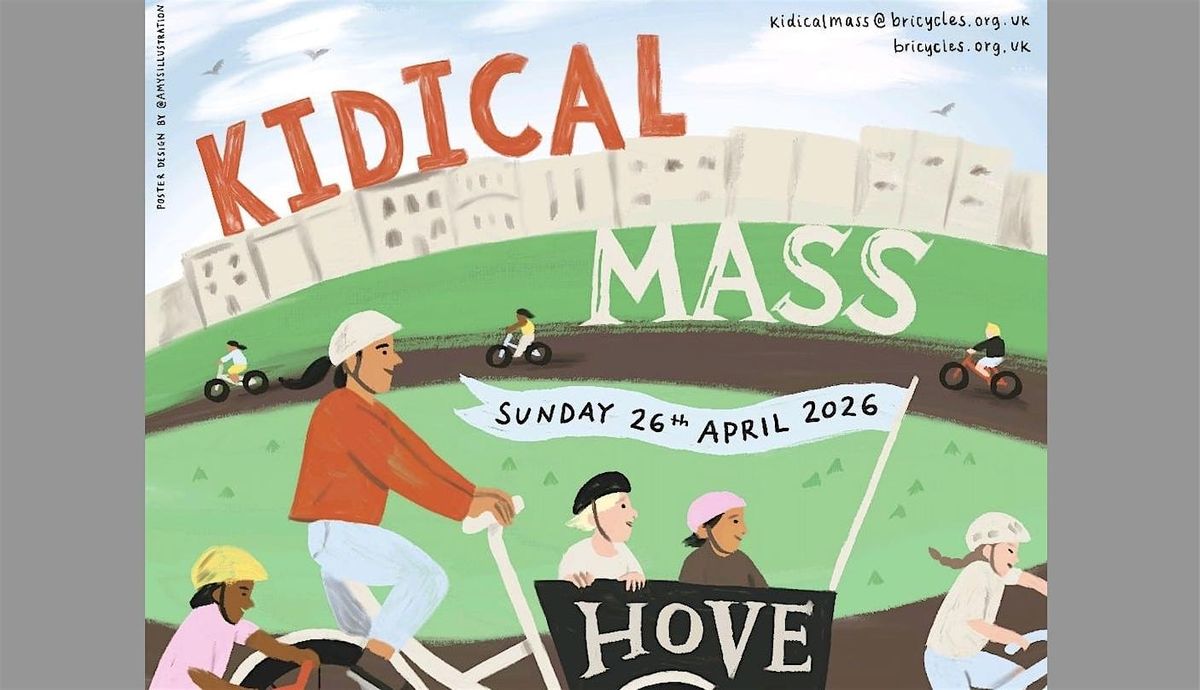 Get ready for Kidical Mass! A fun bike ride. with music and at a gentle pace, where kids and families come together to enjoy getting around the streets of Hove by bike. Everyone is welcome to join in.