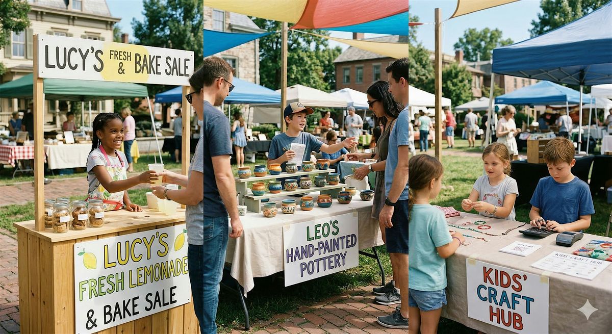 Families are responsible for bringing everything needed for their kid’s setup (products, cash box/mobile payment options, table and display items; tents or coverings if desired for outdoor use depending on final layout). Kidpreneurs are encouraged to: