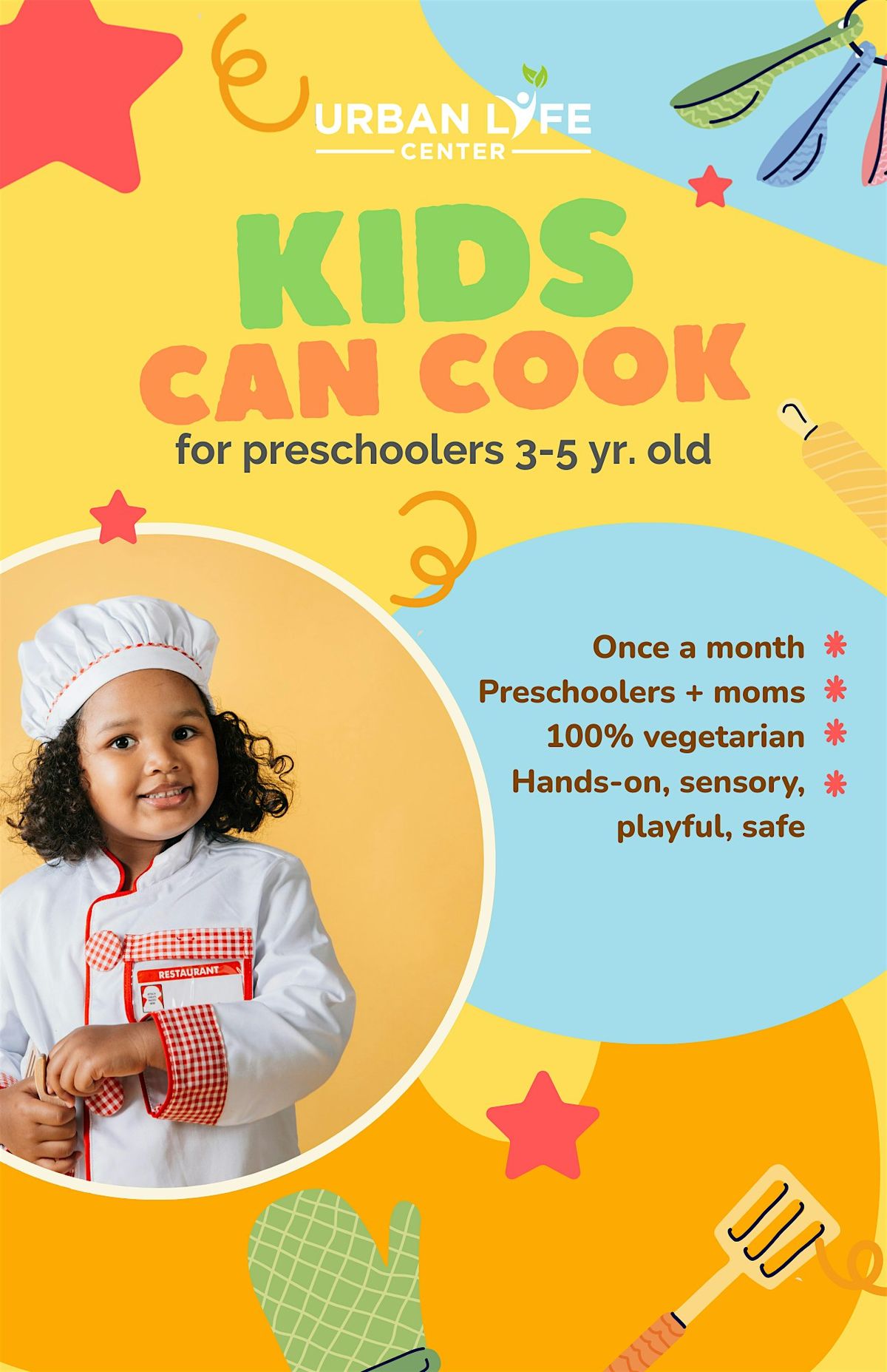 Give your child the gift of confidence, creativity, and healthy habits! Our Kids Can Cook Class introduces young children (ages 3–5) to the joy of cooking delicious, plant-based foods in a fun, safe, and engaging environment.