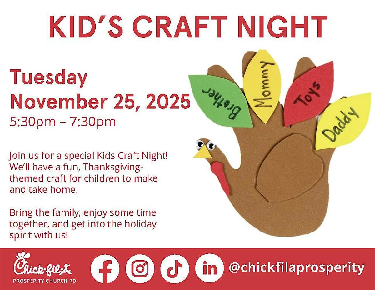 Join us for a special Kids Craft Night! We’ll have a fun, Thanksgiving themedcraft for children to make and take home.