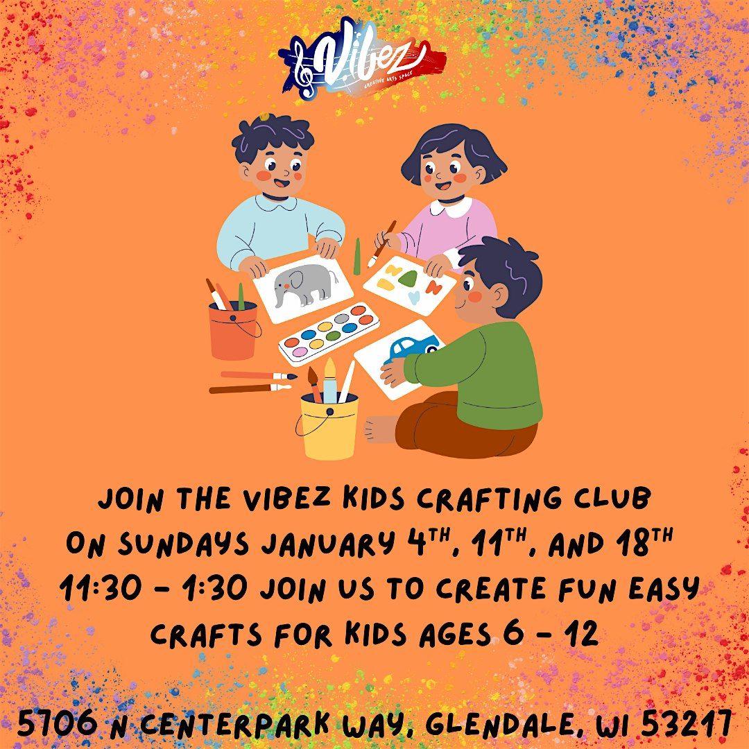 Kids Crafting Club! Ages 6-12. Jan 4, 11:30am-1:30pm. Make awesome crafts—all supplies included. Creativity awaits!About this Event