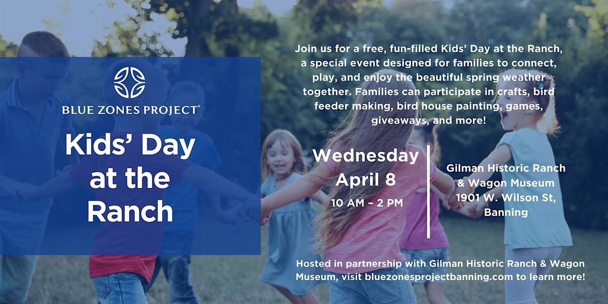 Join Blue Zones Project Banning and Gilman Historic Ranch and Wagon Museum for a fun-filled Kids Day at the Ranch, a FREE event designed for families to connect, play, and enjoy the beautiful spring weather together.