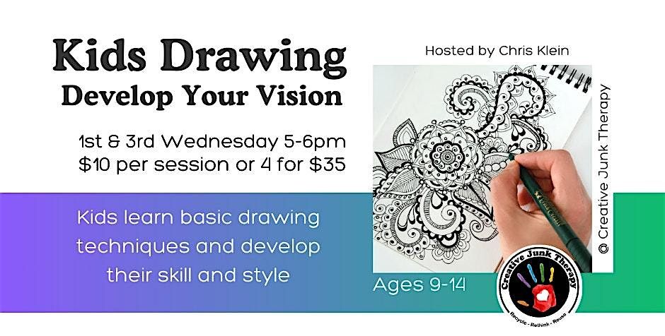 Come join Chris Klein at Creative Junk Therapy for a fun and creative drawing class designed to explore and develop their own style.