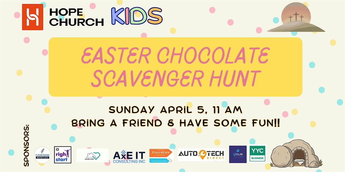 Our Hope Church Kids Ministry is hosting an exciting Easter Chocolate Scavenger Hunt where kids can enjoy treats, fun activities, and celebrate the joy of Easter together.