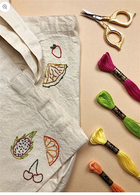 Try embroidery with this beginner workshop. Kids (10+) will learn how to embroider fruits using 3 beginner embroidery stitches. This class is great for kids looking to get started with hand embroidery. They’ll learn how to place their fabric in the hoop, transfer the pattern, split apart their thread, and stitch the satin stitch, back stitch, and sead stitch. Each attendee will receive a full kit that includes: a wooden embroidery hoop, fruit transfer designs, an embroidery needle, full skeins of embroidery thread, cream cotton fabric, and printed instructions.