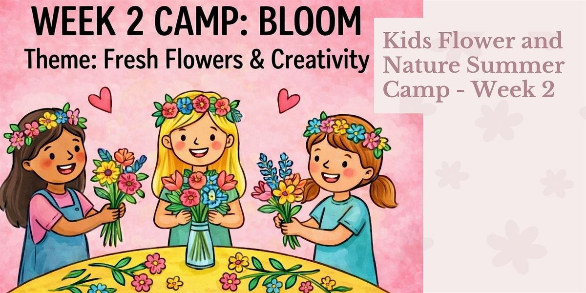 Our Kids Flower Journey Camp – Week 2: BLOOM is a hands-on, joy-filled experience where kids will explore the beauty of fresh flowers and floral design through fun daily projects, creative expression, and interactive learning.