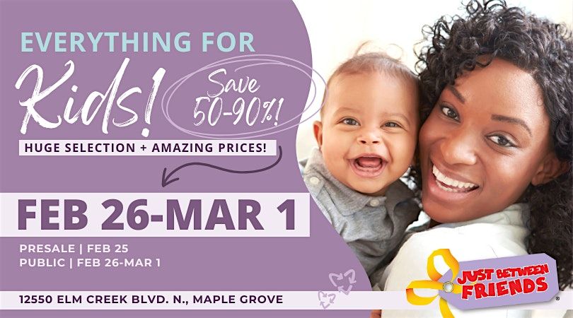 Shop Smart with JBF Maple Grove Feb 26-Mar 1 to save BIG on kids' items.