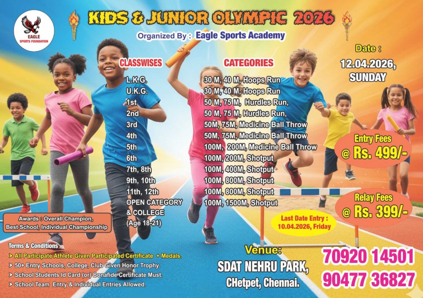 Kids & Junior Olympic Apr 2026 organised by Eagle Sports Foundation on 12th Apr 2026 at SDAT Nehru Park, Chetpet, Chennai.