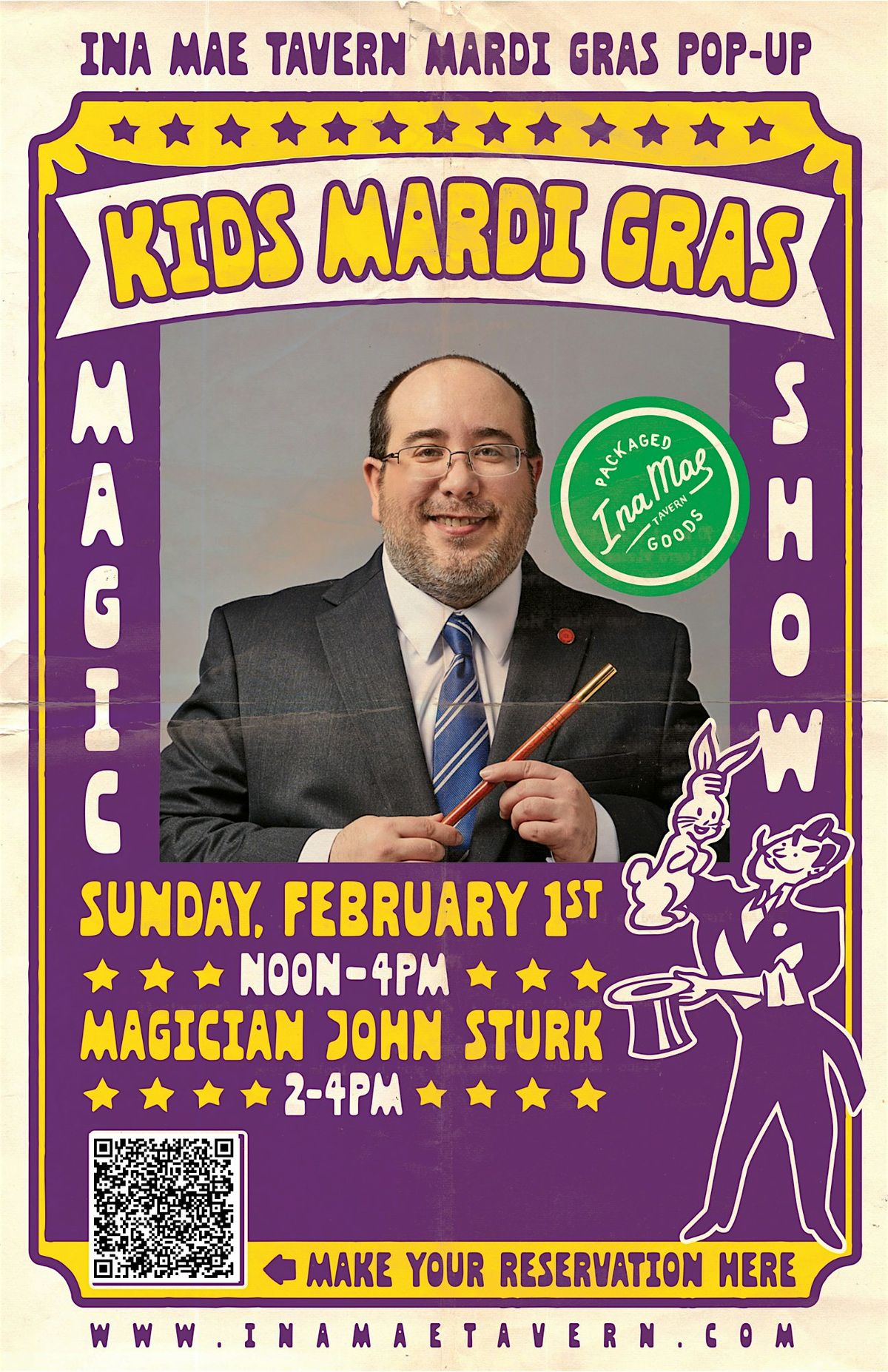 Kids Mardi Gras! Sunday, February 1st, featuring Magician John Sturk from 2-4PM!