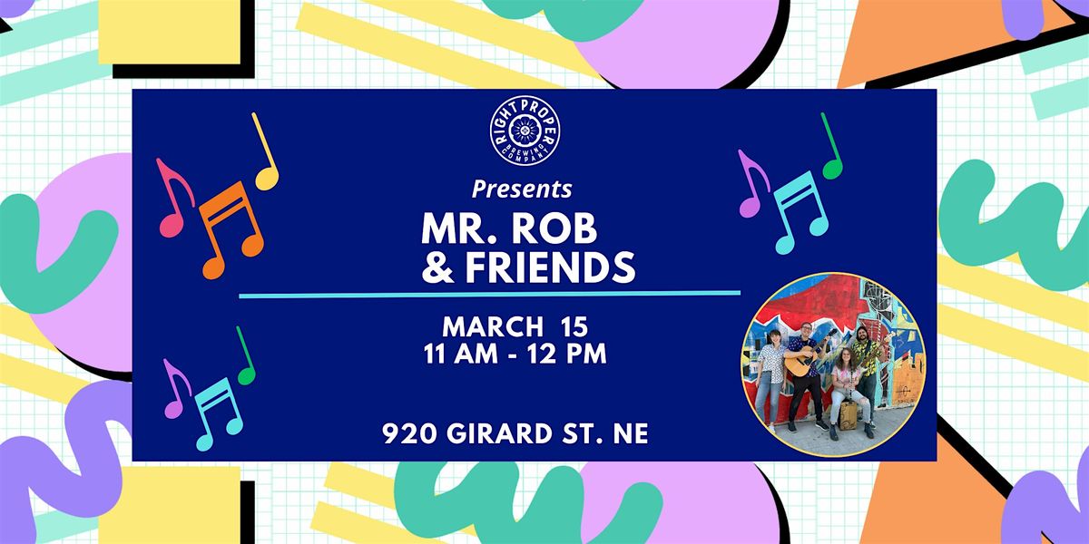 Mr. Rob is an educator, musician, and performer in Washington, DC, who teaches early childhood music for DC Public Schools, plays in the drum line for the Washington Commanders, and performs with his band, Mr. Rob and Friends. Mr. Rob and Friends is a band dedicated to bringing high-quality, engaging music to early audiences that centers on child development and learning. Their performances include original songs, covers of classics, dancing, audience participation, and lots of fun!