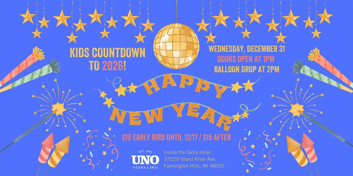 Kids New Year's Eve Countdown to 2026 at UNO Farmington Hills!