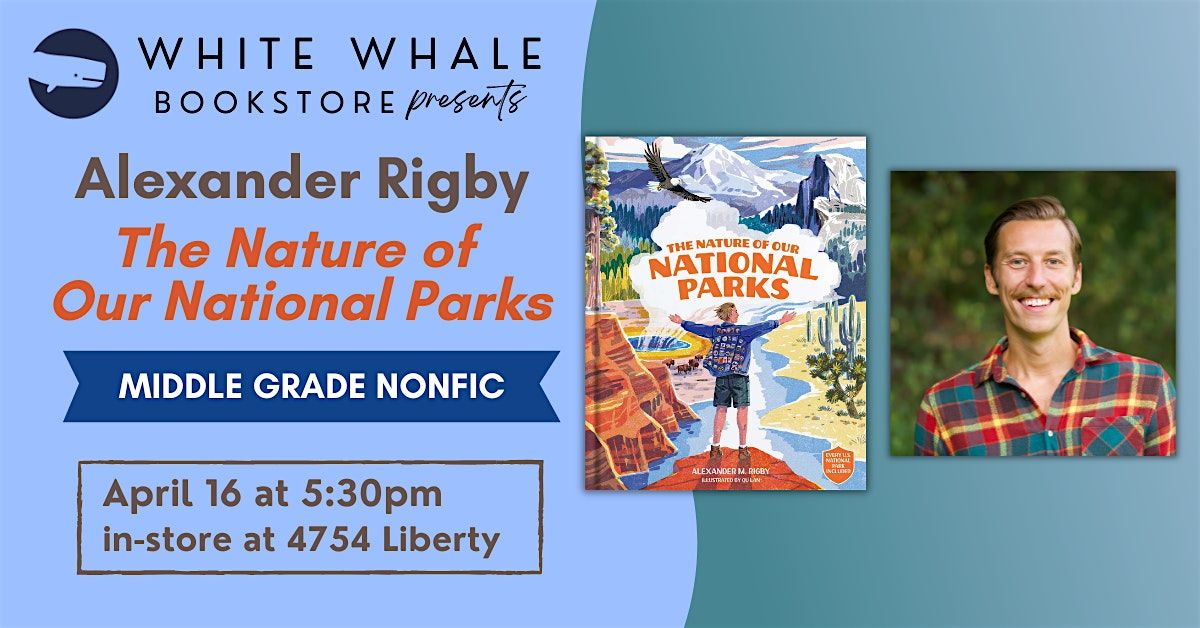 We are ecstatic to celebrate local author and editor, Alexander Rigby, and his debut book: The Nature of Our National Parks, a fascinating nonfiction book for elementary and middle school readers. Please note: this event starts at 5:30pm.