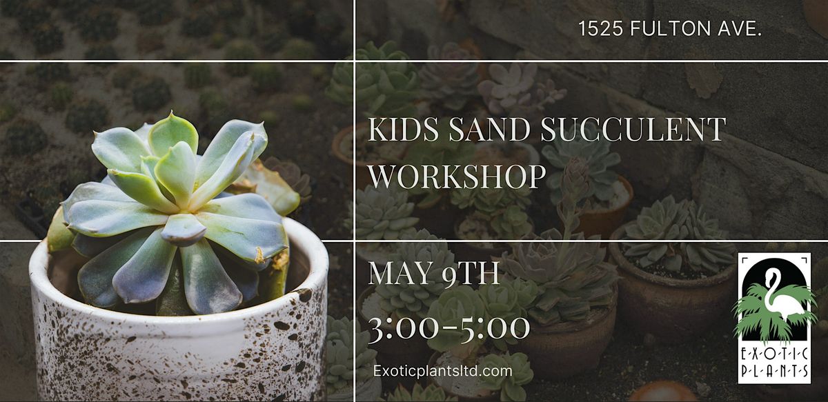 Join Exotic Plants Ltd on May 9th from 3:00–5:00 PM for a hands-on workshop designed especially for kids. Participants will design a sand succulent planter to take home.