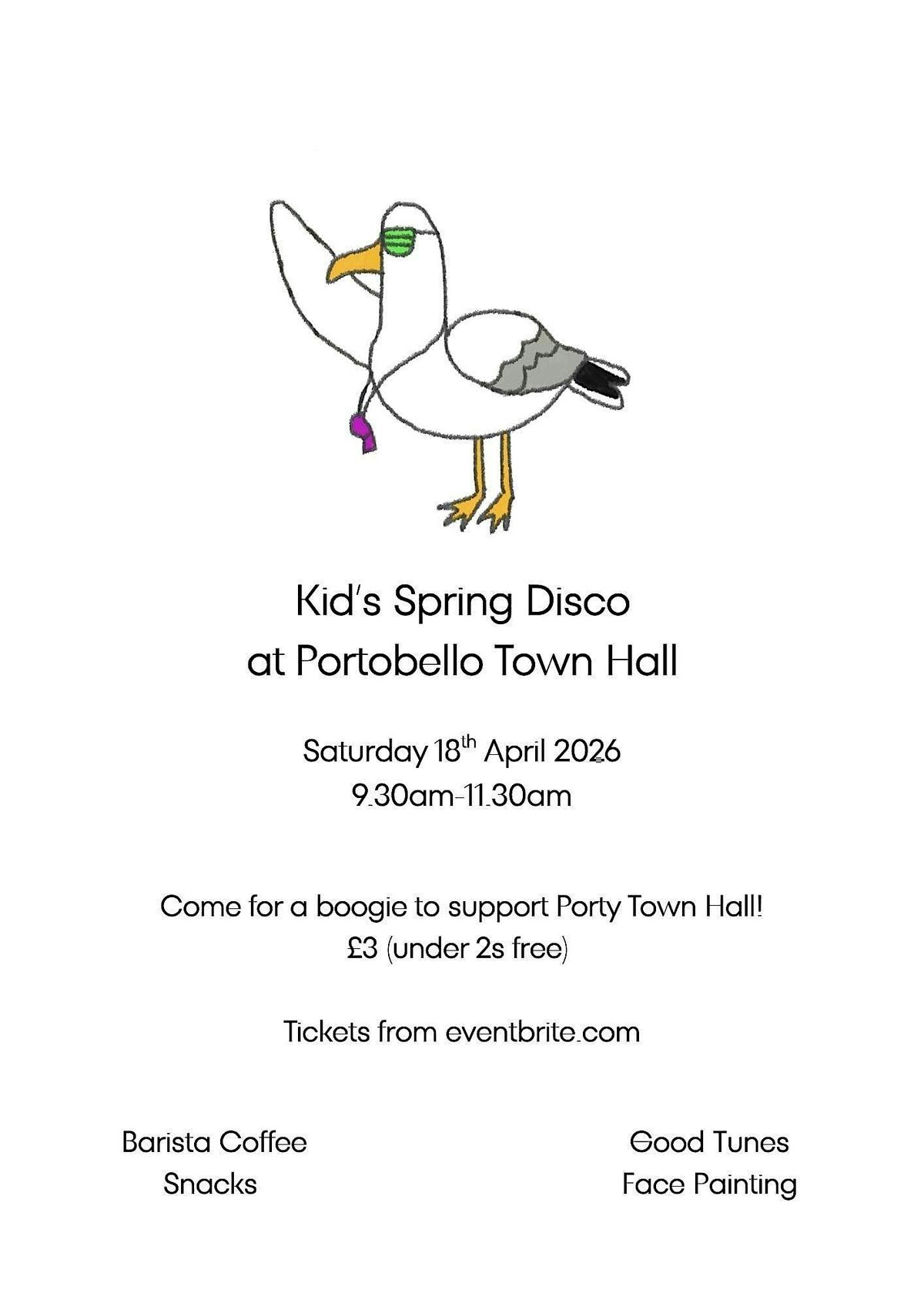 Get ready to dance and have a blast at our Kids Spring Disco! Join us on April 18, 2026 at 9:30 AM (BST) at Portobello Town Hall. It’s the perfect way for the little ones to shake off the winter blues with music, fun, and friends. Don’t miss out on a morning full of energy and smiles!