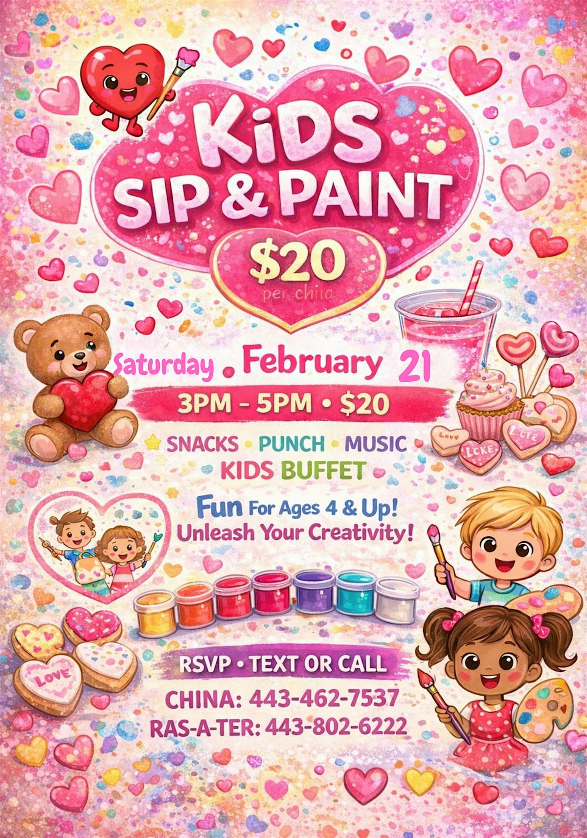 Kids Valentine’s Sip & Paint A sweet and creative Valentine’s experience just for the kids!