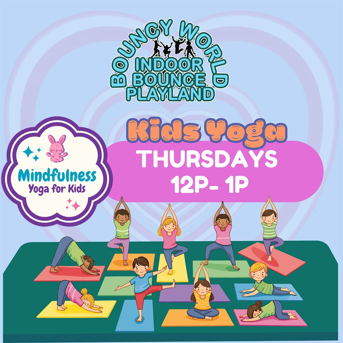 A fun and educational yoga class for kids of all ages, this class introduces kids to yoga poses and tools for breathwork, relaxation, and self-regulation, all while having a great time! $15 includes 1 child, and 1 adult: each additional child is $10. Bouncy World Members receive a $5 discount off of their booking.