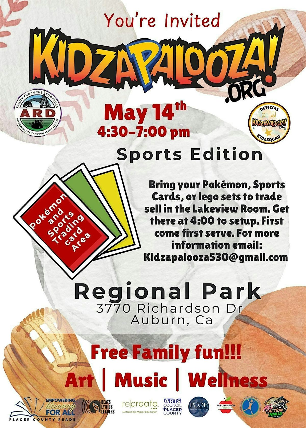 Kidzapalooza Sports Edition – Trading Mania! Pokemon, Legos, and Sports CardsWednesday, May 14th, 2025 | 4:30–7:00 PM | Regional Park