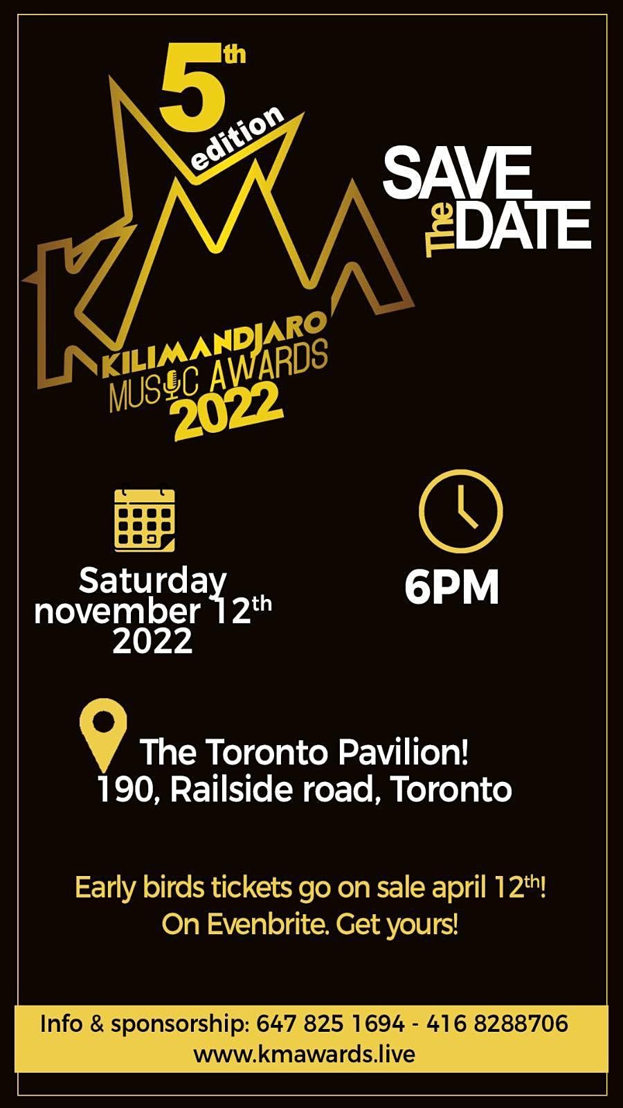 Do not miss the most prestigious Award ceremony for Afro artists in North America on November 12th, 2022 at the Magnificent Toronto Pavilion!