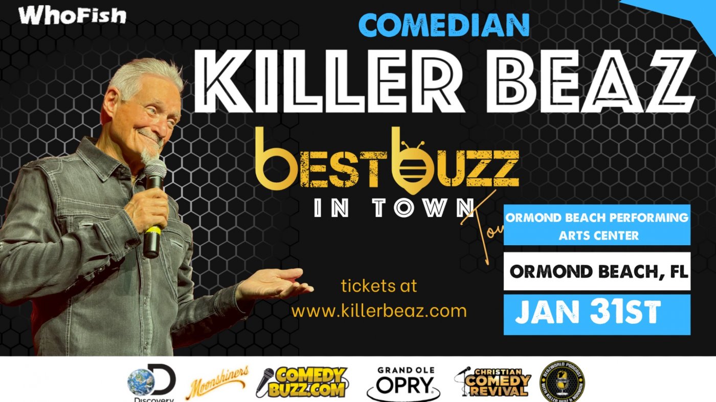 Celebrating the milestone of 10 seasons on Discovery Channel's hit series, "Moonshiners", comedian Killer Beaz is running the roads delivering his new "Best Buzz in Town" tour of outrageously funny and clean comedy. This legendary comedian continues to make regular performances at The Grand Ole Opry, and is headed, loaded down with laughs, to the Ormond Beach Performing Arts Center.