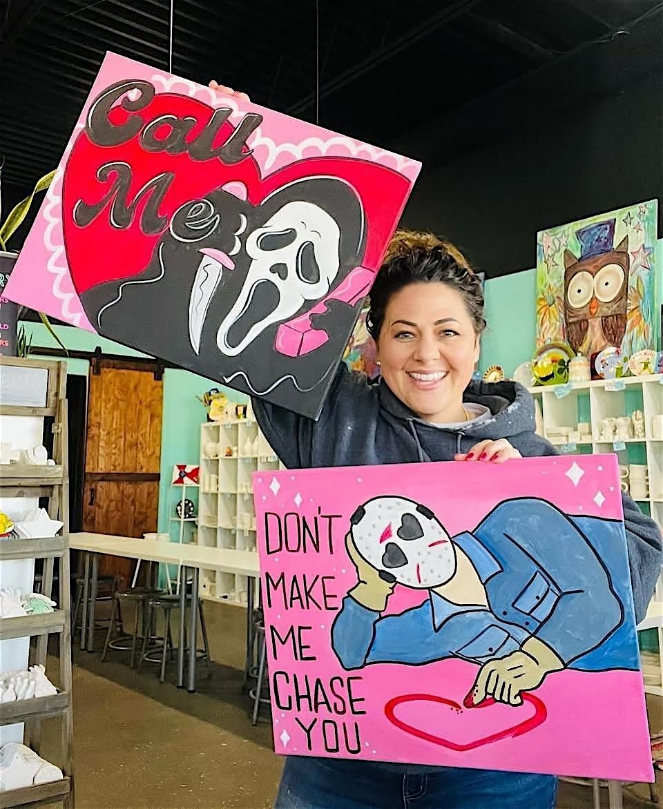 Join us for our Valentine's themed Friday the 13th Paint Night! Pick either one of our canvas options OR choose pottery to paint in store! We will have special silkscreens for the night, as well as photobooth and refreshments - and you can BYOB! From Jack and Sally, Corpse Bride, Frankenstein to your favorite horror film legends! Whether you’re planning a date night, a friends’ night out, or just embracing your inner gothic romantic, this event is for everyone!