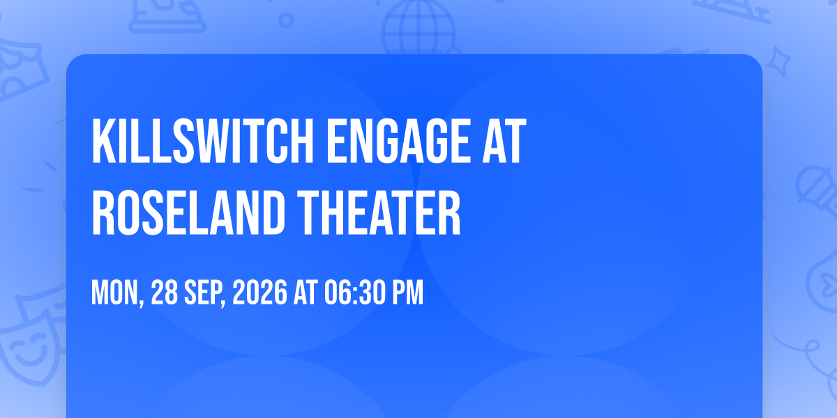 β¨ Enter a world of endless possibilities at Killswitch Engage at Roseland Theater, where every moment tells a story! ποΈ The stunning Roseland Theater in vibrant Portland, OR transforms into a realm of wonder on September 28th, 2026 at 06:30 PM. π They have crafted an experience that goes beyond the ordinary, combining elements of surprise, delight, and pure entertainment. Every detail has been thoughtfully considered to ensure your journey with us is nothing short of extraordinary. π― Join fellow adventure seekers and memory makers in this celebration of imagination and innovation. π Reserve your spot today and be part of something truly special!