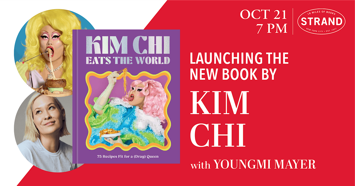 Join us for a launch event with world-famous drag queen Kim Chi, discussing her new cookbook Kim Chi Eats The World: 75 Recipes Fit for a (Drag) Queen. Joining Kim Chi in conversation is standup comedian Youngmi Mayer. This event will be hosted in the Strand Book Store's 3rd-floor Rare Book Room at 828 Broadway on 12th Street.