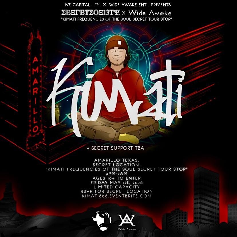 SECRET SOCIETY IN COLLABORATION W/ WIDE AWAKE ENT. BRINGS YOU A SECRET TOUR STOP! FEATURING CANADIAN DJ HEADLINER KIMATI! SOMEWHERE IN AMARILLO, TEXAS!! IF YOU KNOW, YOU KNOW...