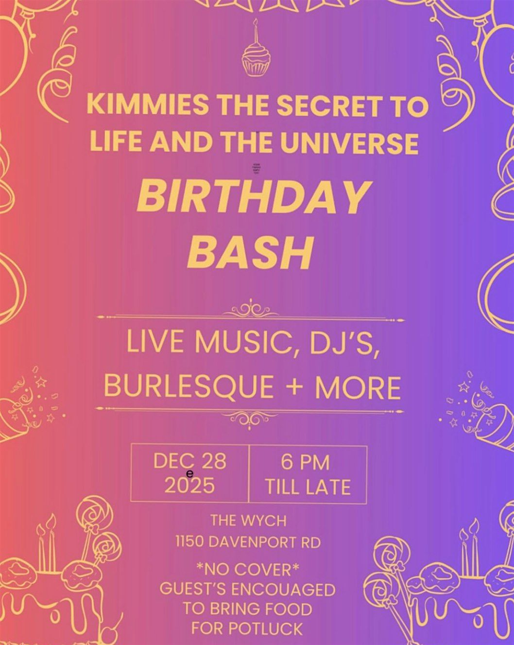 KIMMIE'S SECRET TO LIFE & THE UNIVERSE - B-Day Bash with Potluck @ The Wych