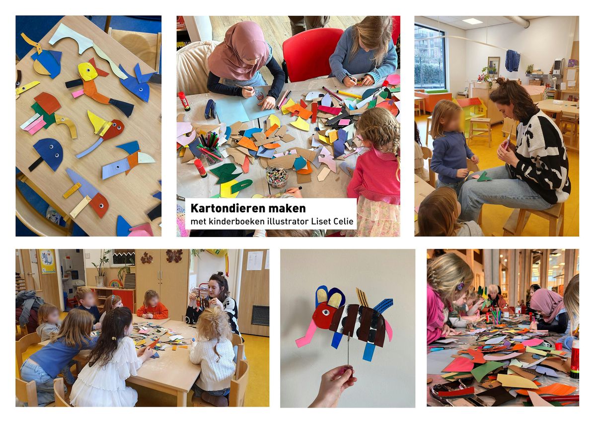 Vandaag geeft Liset twee keer een workshop 'Kartondieren maken' voor kinderen vanaf 6 jaar