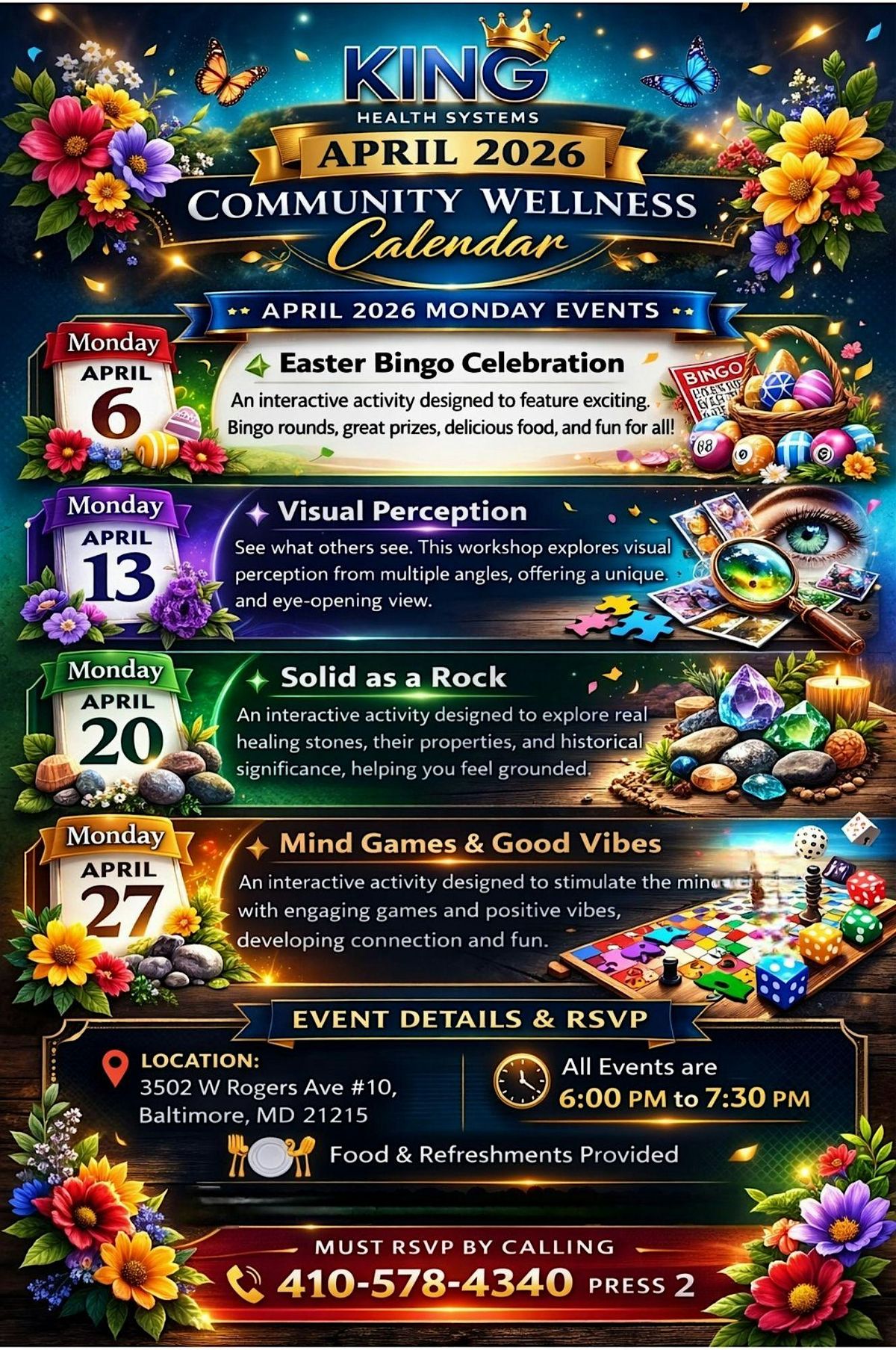 Join us for an exciting in-person event all about King Health Systems and how they approach visual perception. Dive into the latest insights, explore hands-on activities, and connect with others passionate about understanding how we see the world. Don’t miss out on this unique chance to experience cutting-edge health systems up close at 3502 W Rogers Ave Suite #10 (please note: there are stairs to walk down/up to attend this event).