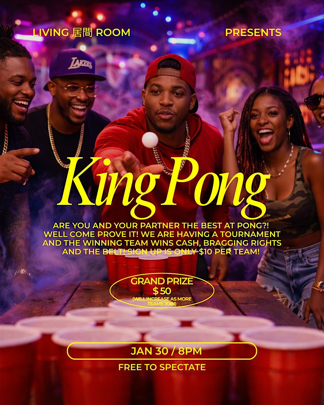 Come join us for a fun-filled evening of competitive pong. Get your teammate together and come to WIN!