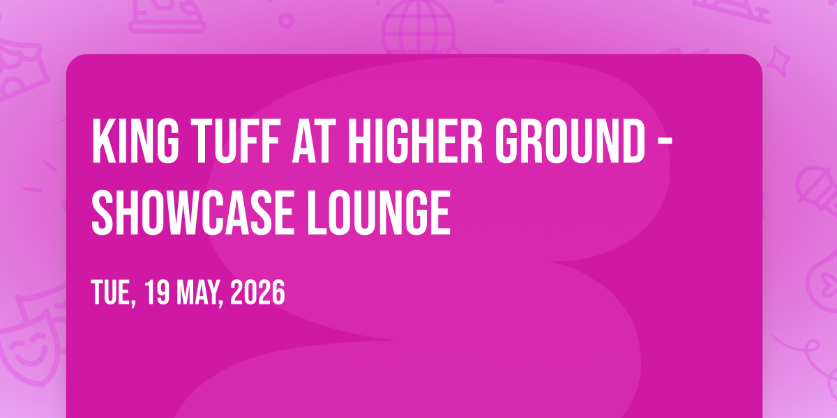 β¨ Embark on an extraordinary journey at King Tuff at Higher Ground - Showcase Lounge, where every moment promises to be unforgettable! π Imagine of transforming Higher Ground - Showcase Lounge in the heart of South Burlington, VT into a realm of endless possibilities. π Join us on May 19th, 2026 at 08:00 PM for an experience that will challenge your imagination and exceed your expectations. π― This carefully curated event combines the finest elements of entertainment, innovation, and community spirit. Whether you're an adventure seeker, culture enthusiast, or someone looking for unique experiences, this event offers something special for everyone. π Don't miss this chance to be part of something extraordinary!