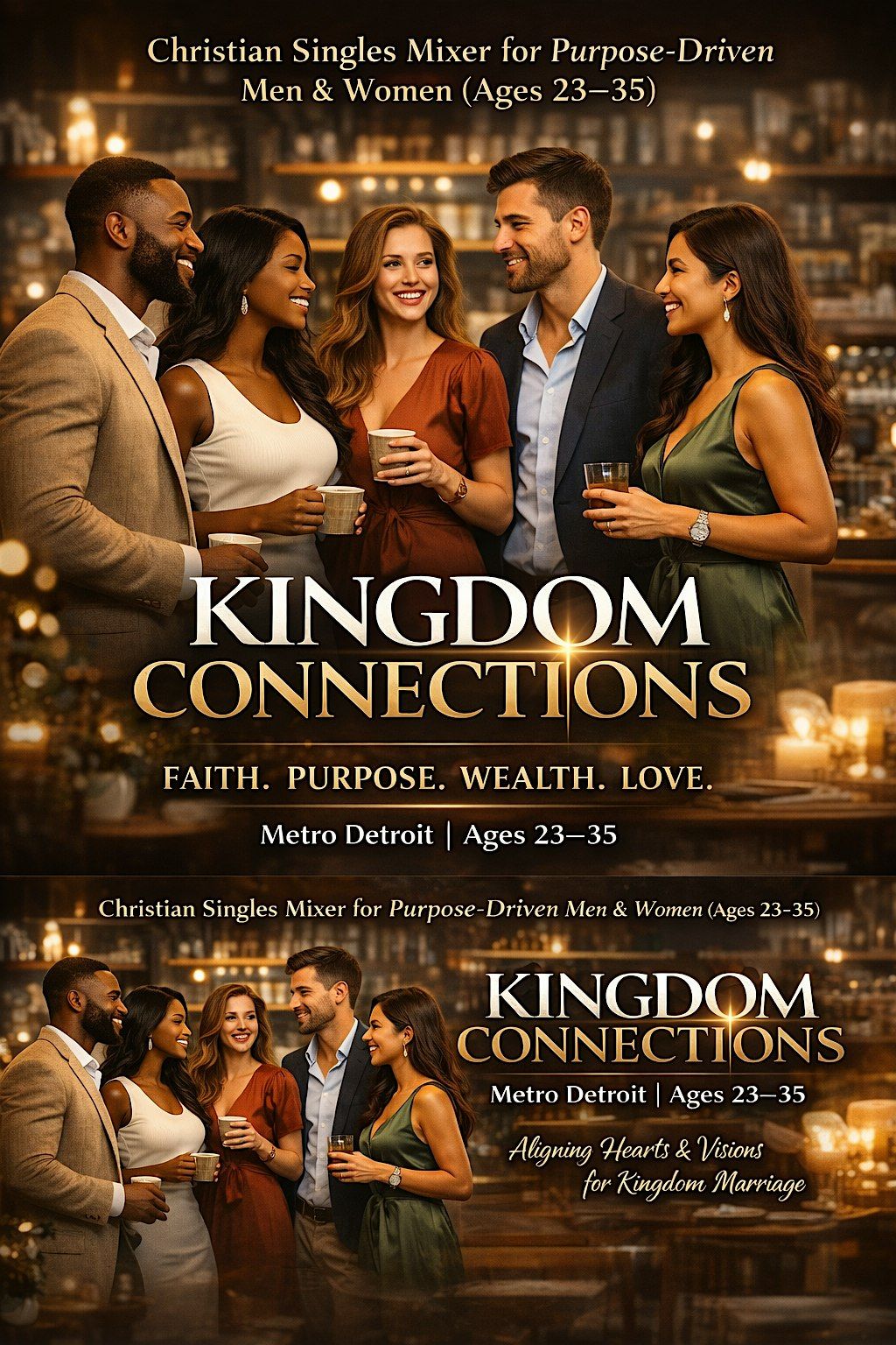 Kingdom Connections is an exclusive Christian singles mixer designed for high-value, purpose-driven men and women in Metro Detroit who are serious about their faith, their future, and who they build it with.