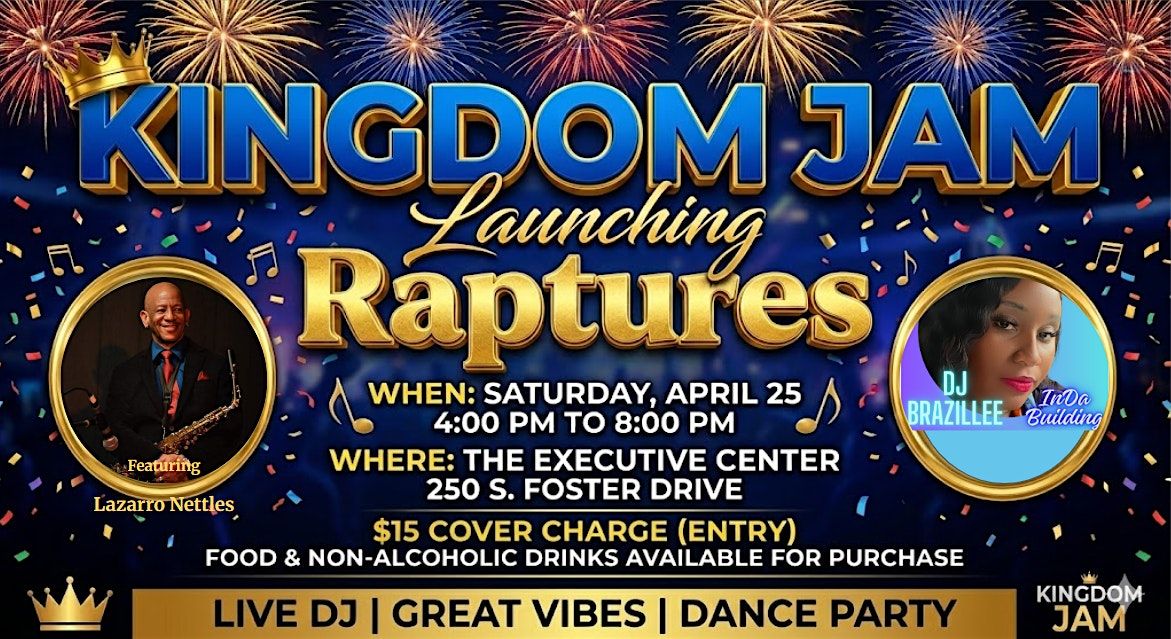 Join us in person for an awesome time at Kingdom Jam! It's all about good vibes, great music, connecting friends and family, and meeting new people. Whether you're dancing, or just soaking in the energy, this is the place to be. Don't miss out on the fun—come feel the beat and share the love lifiting up the name of Jesus! This event is all about building community, sharing faith, good food and enjoying meaningful connections in a christian atmosphere.