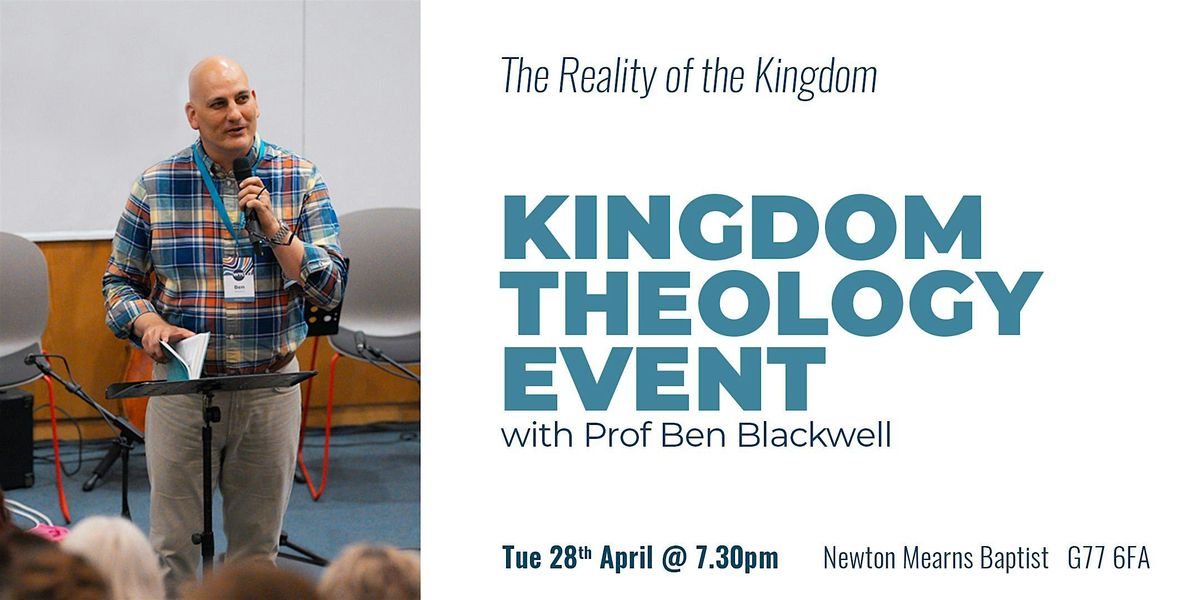 Come and join Ben Blackwell, Principal of for a Kingdom Theology Event on Tuesday 28th April at Newton Mearns Baptist Church, Glasgow.