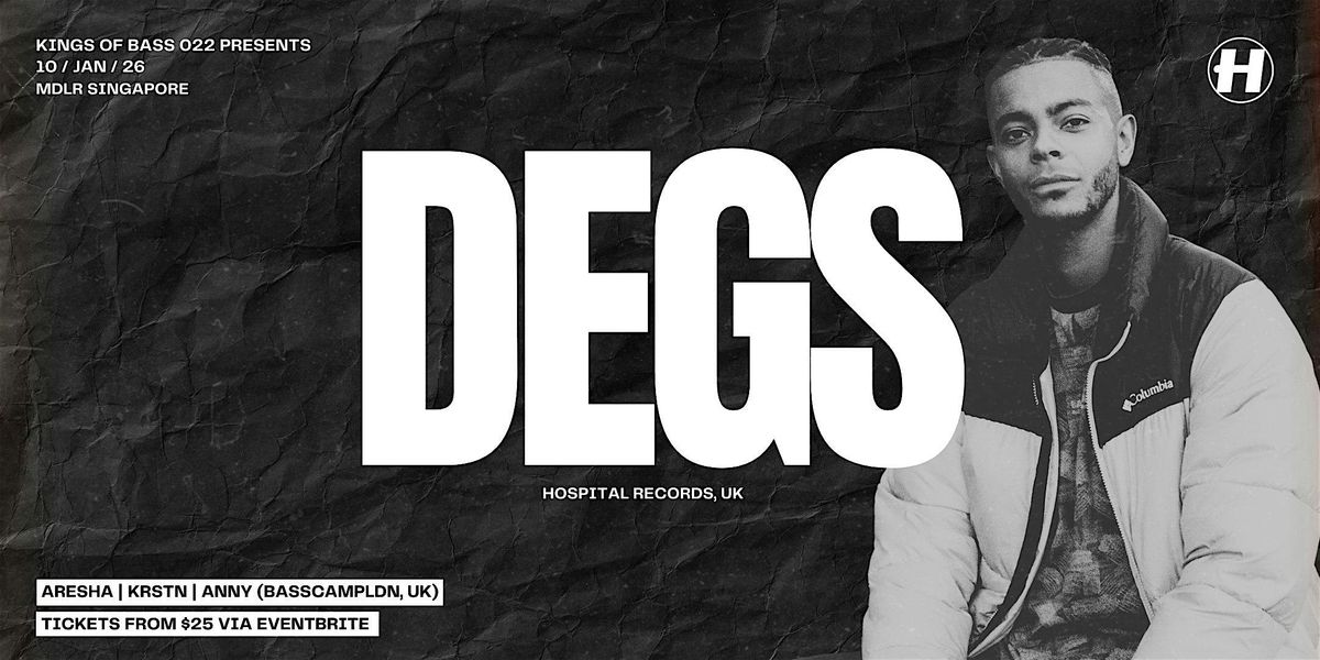 Breaking through with the global anthem Poveglia, DEGS quickly became one of the most in-demand vocalists on the circuit, earning support from London Elektricity and a permanent place on the Hospital Records roster. His sets move effortlessly from fast, high-impact bars to melodic hooks, balancing raw dancefloor energy with emotional connection.