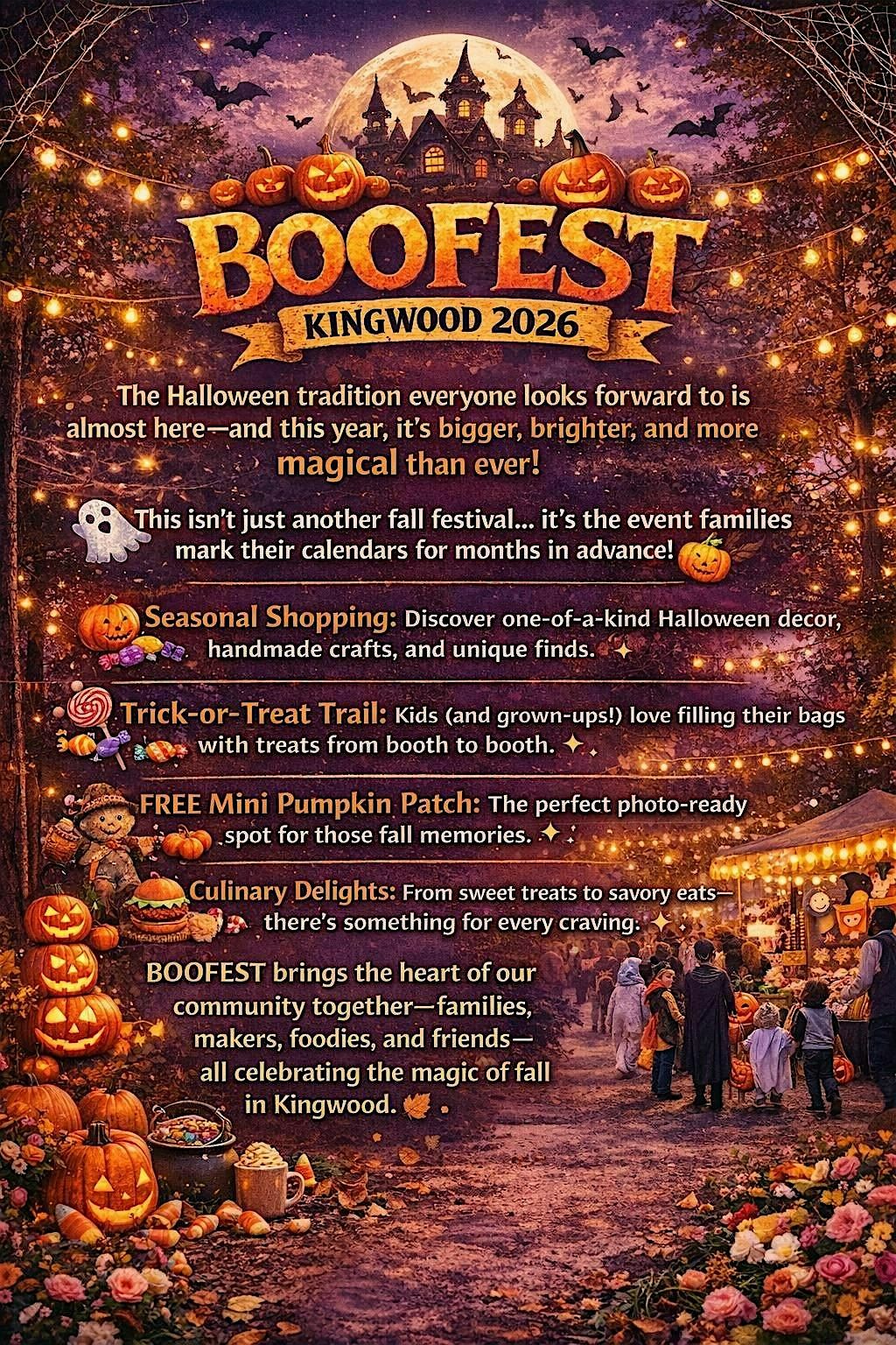 BOOFEST Kingwood 2026Kingwood’s favorite Halloween tradition is back, and it’s the kind of day you circle on the calendar the second fall