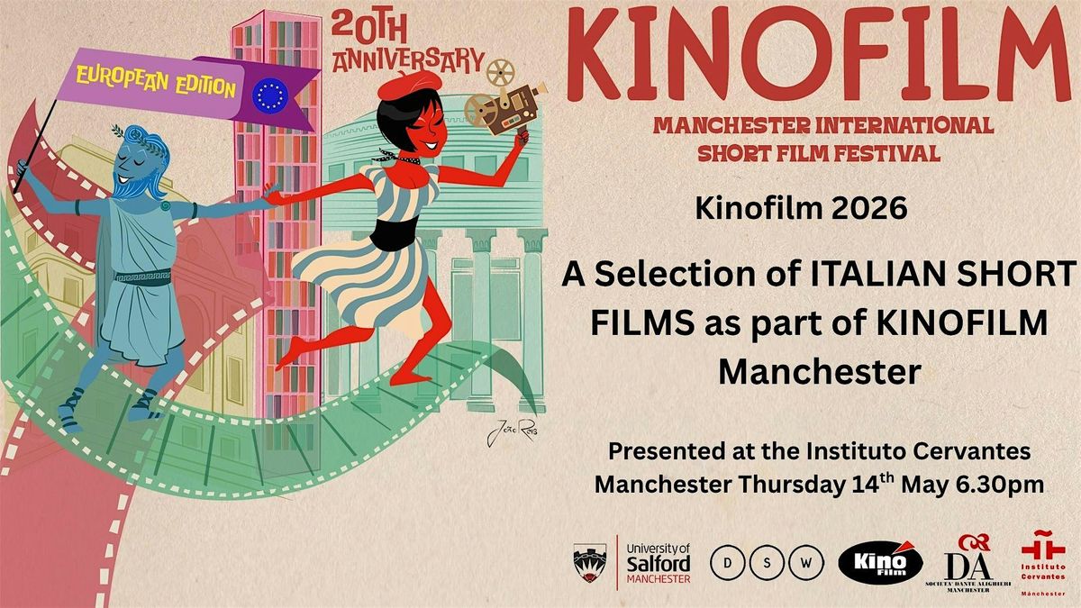 Welcome to KINO at the Instituto Cervantes for this fine selection of Italian Shorts brought to you by KINOFILM 2026 European Focus, in collaboration with the the Società Dante Alighieri Manchester and the Instituto Cervantes Manchester. Tickets for this event are FREE but should be booked in advance. to gurantee your seat. There may be some remaining tickets available on the door .