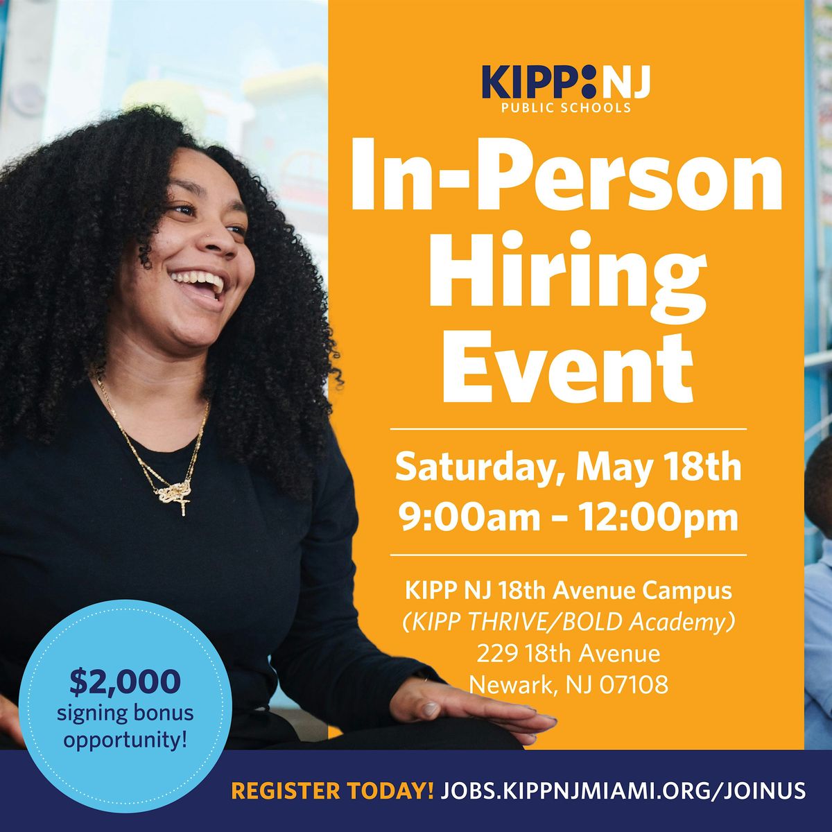 Come and learn more about KIPP NJ, meet 1:1 with a Recruiter or School Leader and interview for your position of interest.