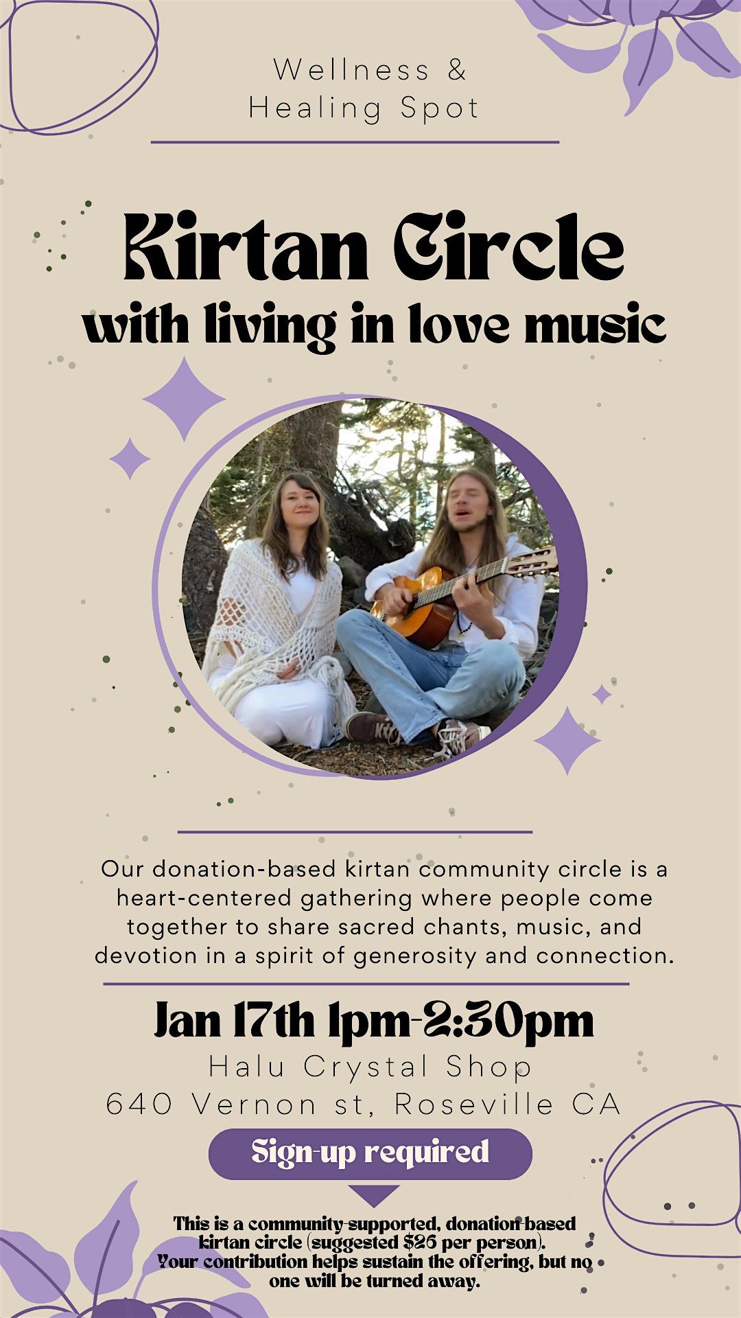 Join us for a heart-opening Kirtan Circle with Living in Love Music, a sacred and soulful experience where voices unite in mantra, music, and devotion.