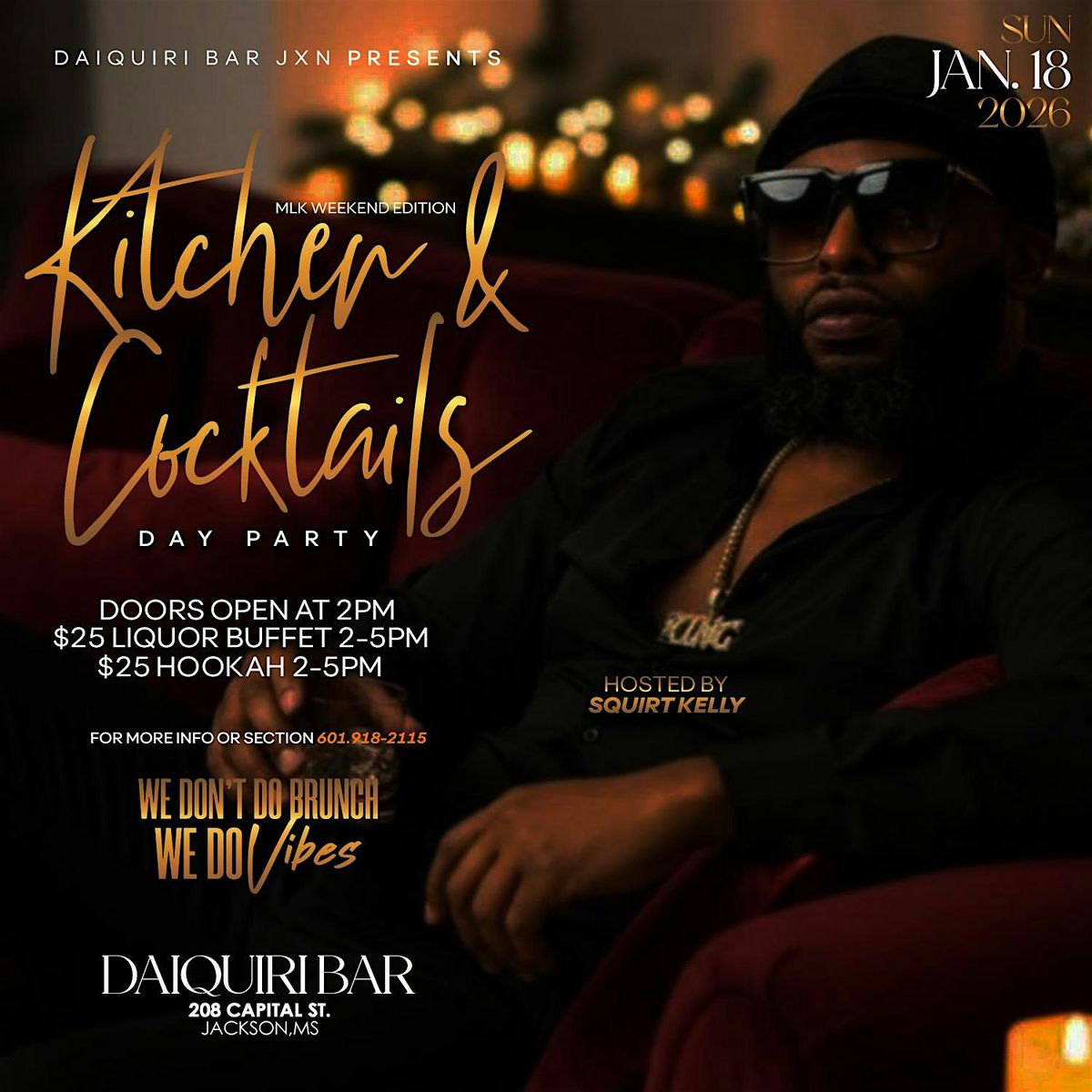 The Daiquiri Bar presents Kitchen and Cocktails Day Hosted by Squirt Kelly. We don't do brunch... we do VIBES!