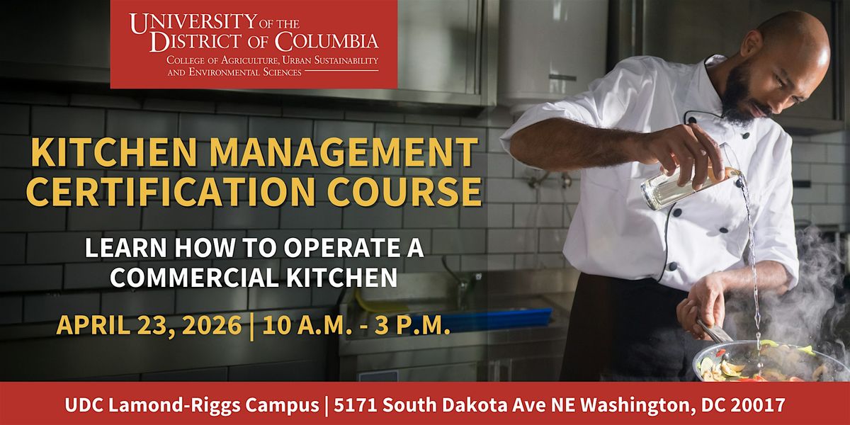 The UDC College of Agriculture, Urban Sustainability, and Environmental Sciences (CAUSES) offers this in-person introductory course to equip food service vendors with the essential tools to operate commercial kitchen equipment. This certificate course explores the competencies every foodservice professional should possess: proper management and maintenance of a food service business and its equipment.