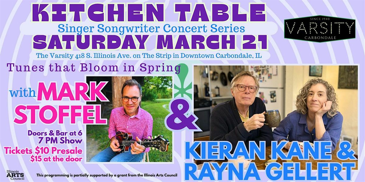 Mark Stoffel, and Rayna Gellert & Kieran Kane are next up in Kitchen Table Songwriters Series at the Varsity on Saturday, March 21, 2026, when tunes will bloom during the spring equinox.