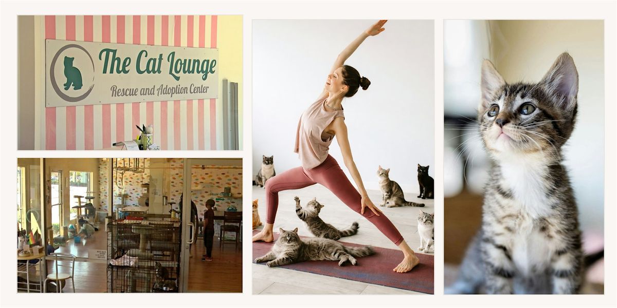 Join Union Yoga for a special workshop at The Cat Lounge Rescue and Adoption Center in La Jolla. Enjoy a yoga session with roaming teen/adult cats, all while supporting a good cause! After class, guests can visit the kitten nursery, pet the adoptable cats, and learn about their stories. **Workshop takes place at The Cat Lounge, not our studio**